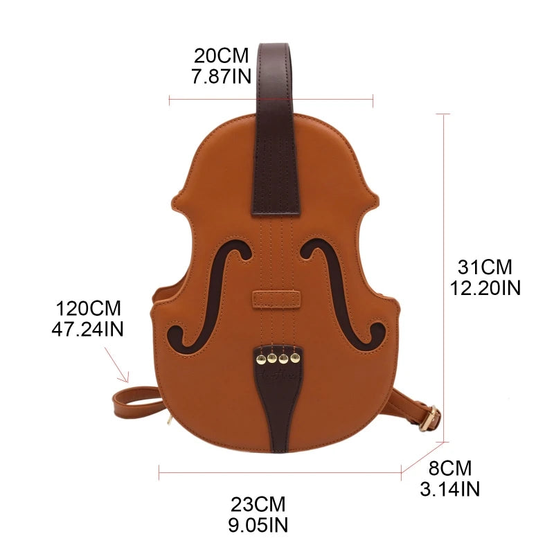 This violin-shaped backpack is perfect for a teenager girl to carry to school or while traveling. Made of PU leather, it combines style and functionality.
