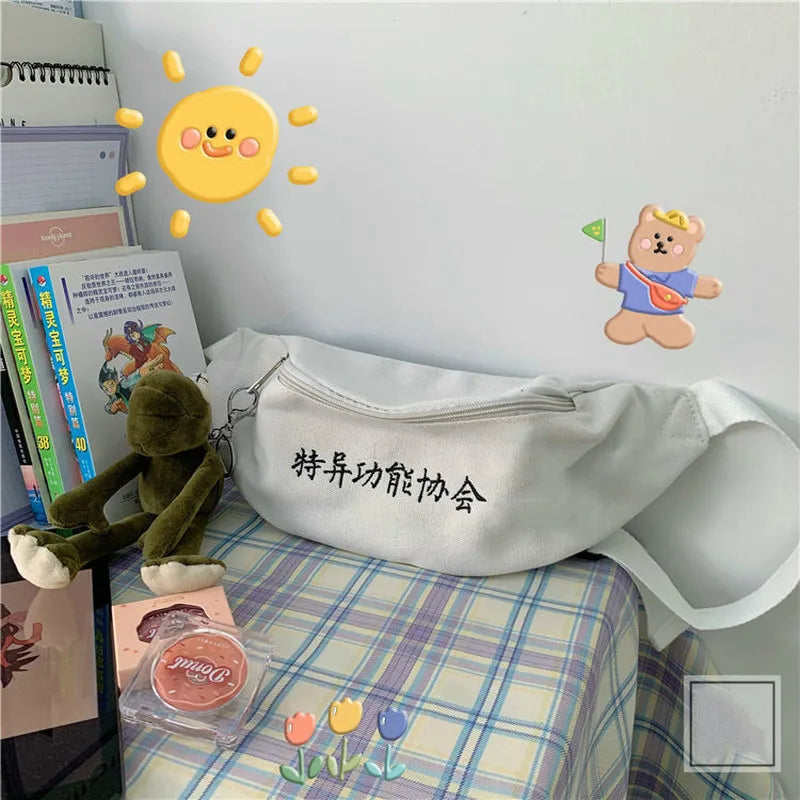 Waist Bags Letter-printed All-match Canvas Students Fanny Packs Casual