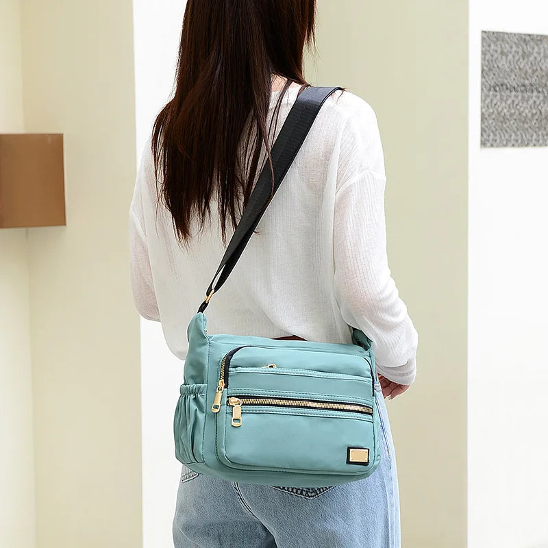 Stay organized with this waterproof cloth shoulder bag that features multiple compartments. Versatile and stylish, it's perfect for daily use.