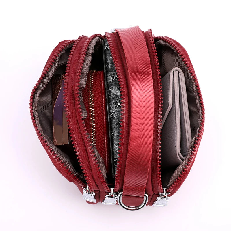 Waterproof Nylon Crossbody Bag Multi-layer Zipper Bag