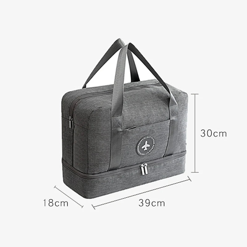 This multifunctional travel duffle bag features a waterproof design with dry wet separation for convenient storage. It is perfect for all your travel essentials.