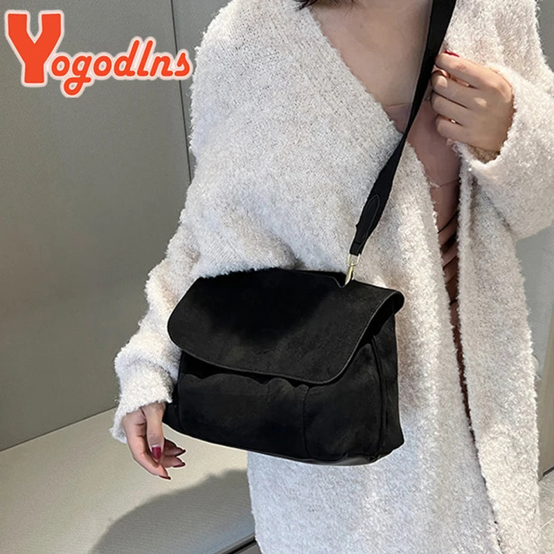 Winter Frosted Leather Shoulder Bag Female Flap Crossbody Bag