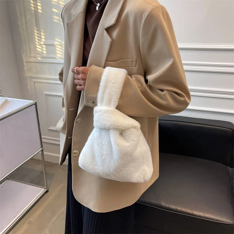 Stay cozy and stylish with this faux fur handbag perfect for the cold winter days. The shoulder tote bag is designed to keep you warm and fashionable.