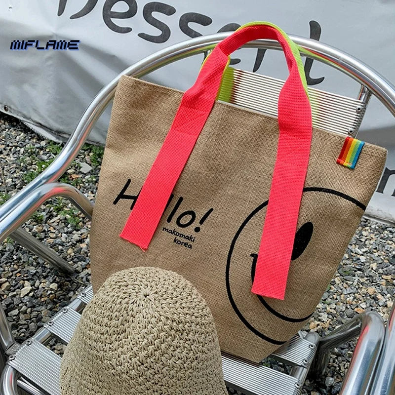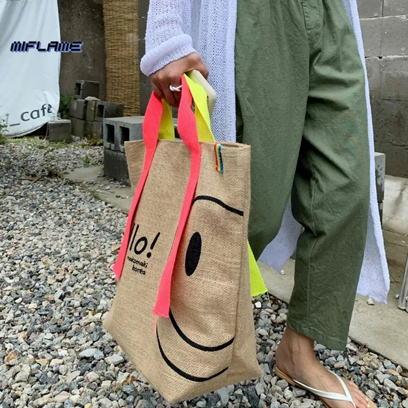 Woman Cotton Linen Printed Tote Bag Purses Sac