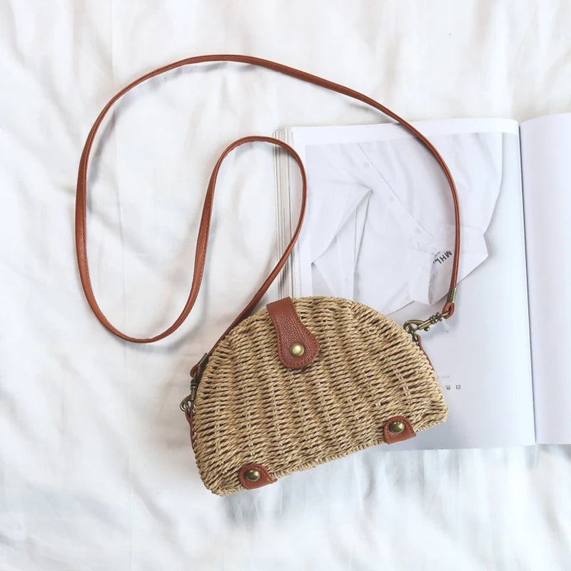 Woman Straw Bag Semi-Circle Shoulder Bag Rattan Handbag Summer Beach Bag