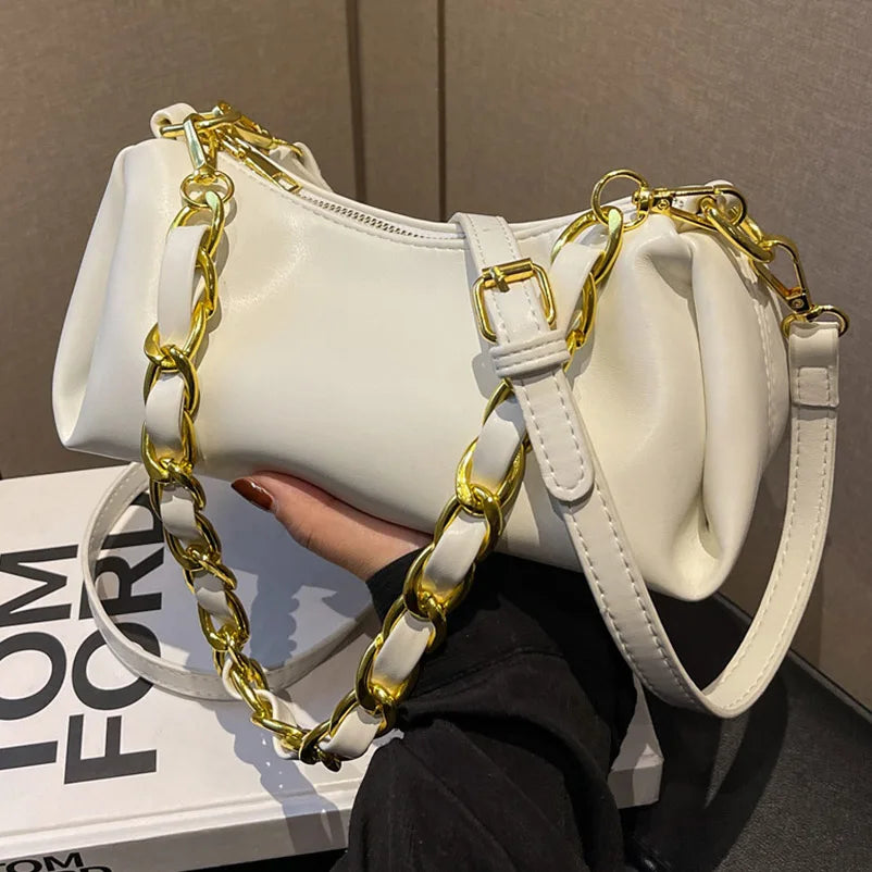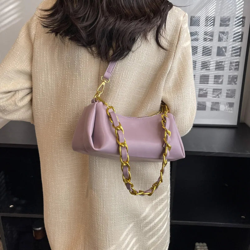 Elevate your style with this spring and summer textured PU leather shoulder bag featuring a chain strap. Perfect for any occasion.