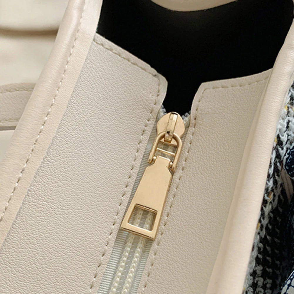 This stylish shoulder bag features a classic plaid pattern and a convenient zipper closure. Made of high-quality woolen cloth, it's perfect for travel, shopping, or everyday use.