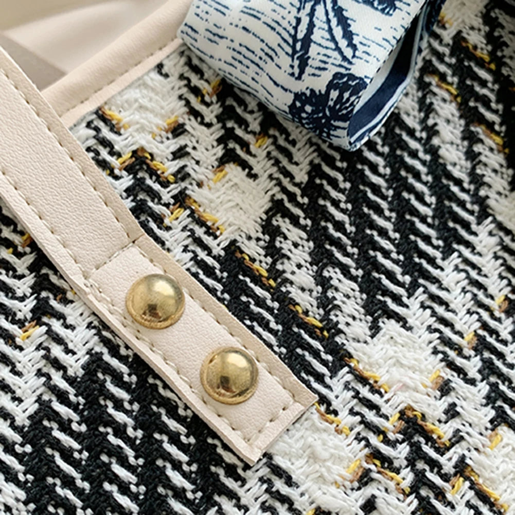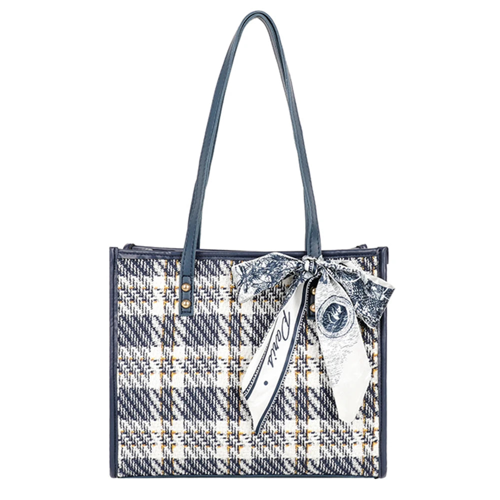 Women's Bowknot Shoulder Bag Plaid Pattern Travel Tote Handbag