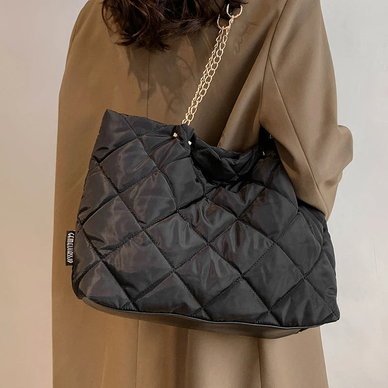 Stay stylish with this pure all-match shoulder bag, perfect for casual shopping outings in the winter. The plaid quilted design adds a touch of sophistication to any outfit.