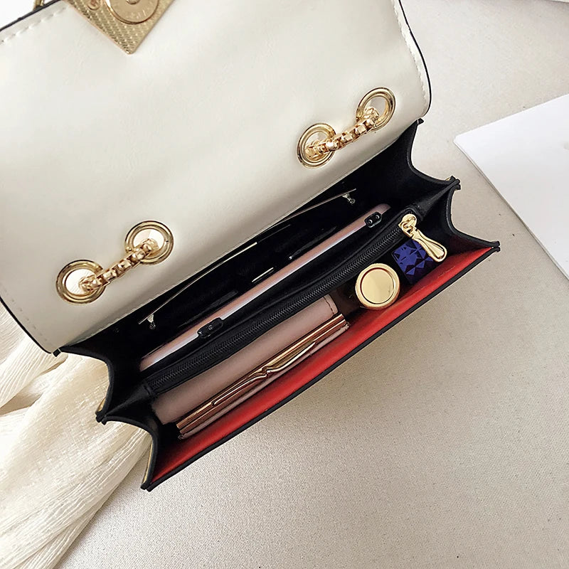 This stylish messenger bag is made of high-quality PU leather, perfect for travel and everyday use. It features a chic chain strap and large storage capacity.