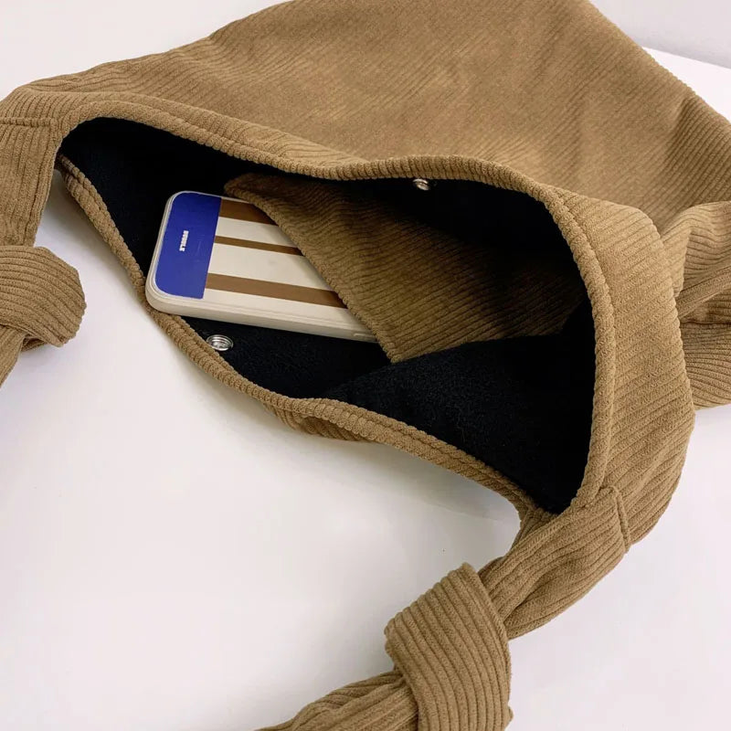 This fashionable corduroy handbag is perfect for students and casual outings. The magnetic buckle closure adds convenience and security.