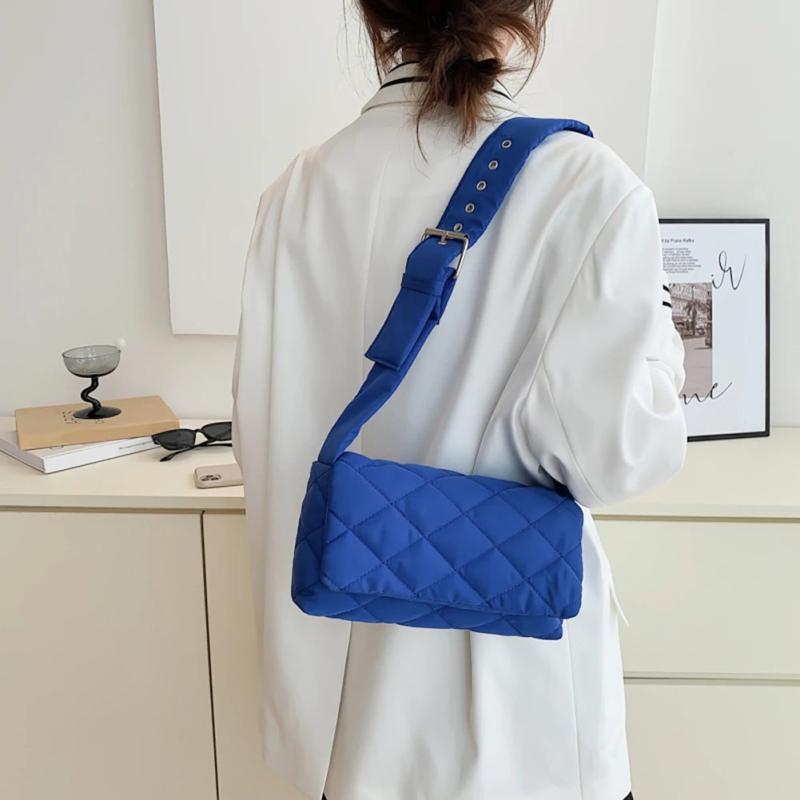 This nylon cloth handbag is a perfect companion for travel and shopping. Its square pouch design with a small flap adds style and functionality.