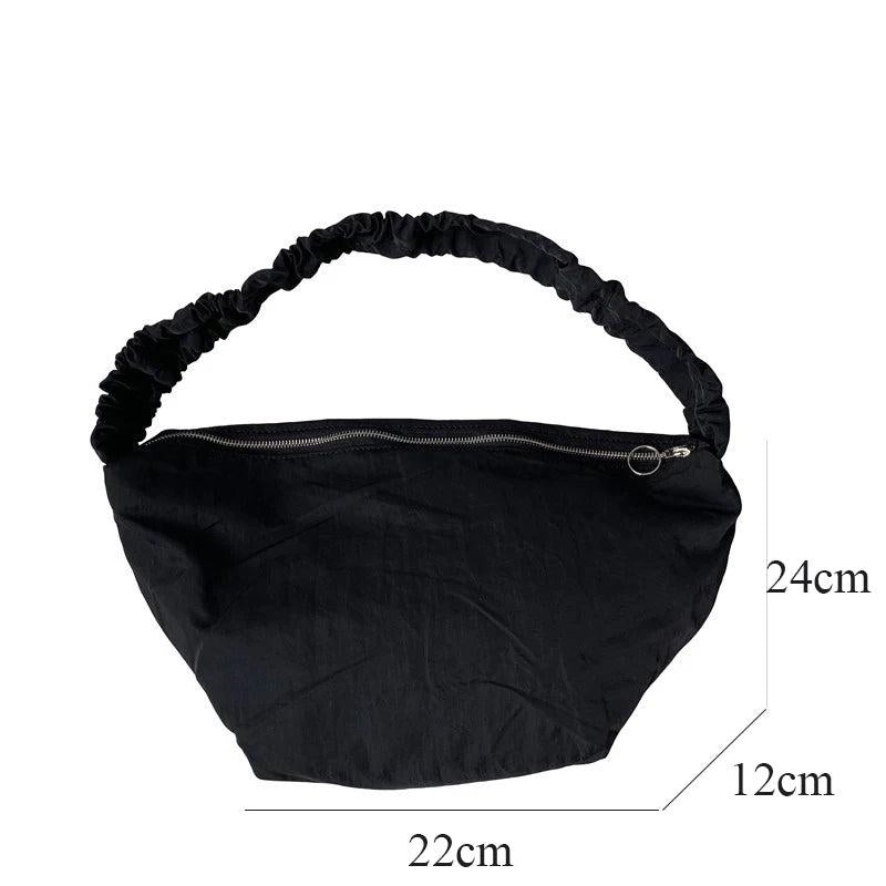 Description:Stay organized in style with this high capacity shoulder bag made of durable nylon. Features a pleated design, ruched purse, and adjustable shoulder strap.Features: Spacious dumpling bag perfect for everyday use Secure zipper closure to keep your belongings safe Versatile ruched design adds a touch of sophistication Adjustable shoulder strap...