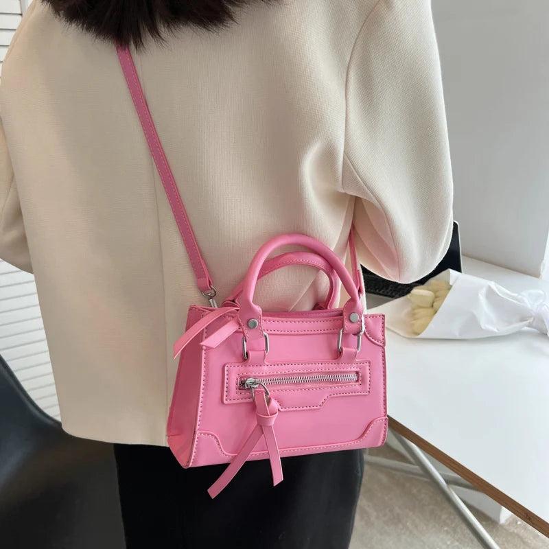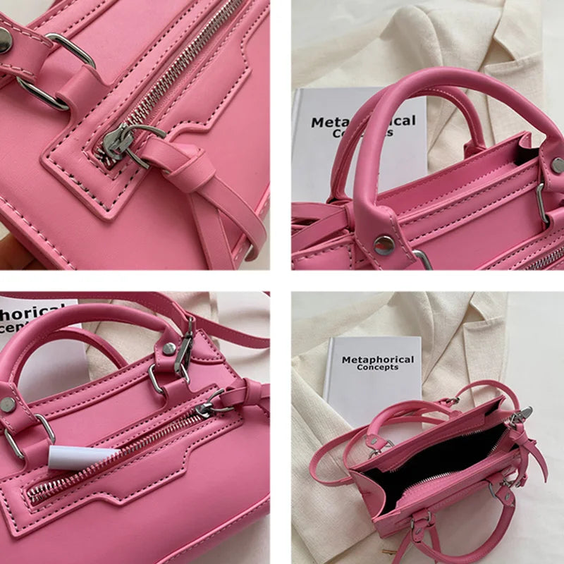 Elevate your style with this chic PU leather purse and handbag. Perfect for any occasion, this high-quality bag features a trendy design in pink and green.