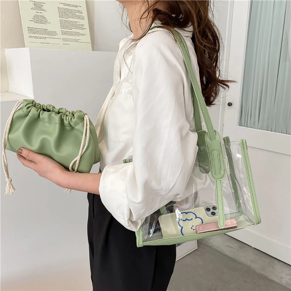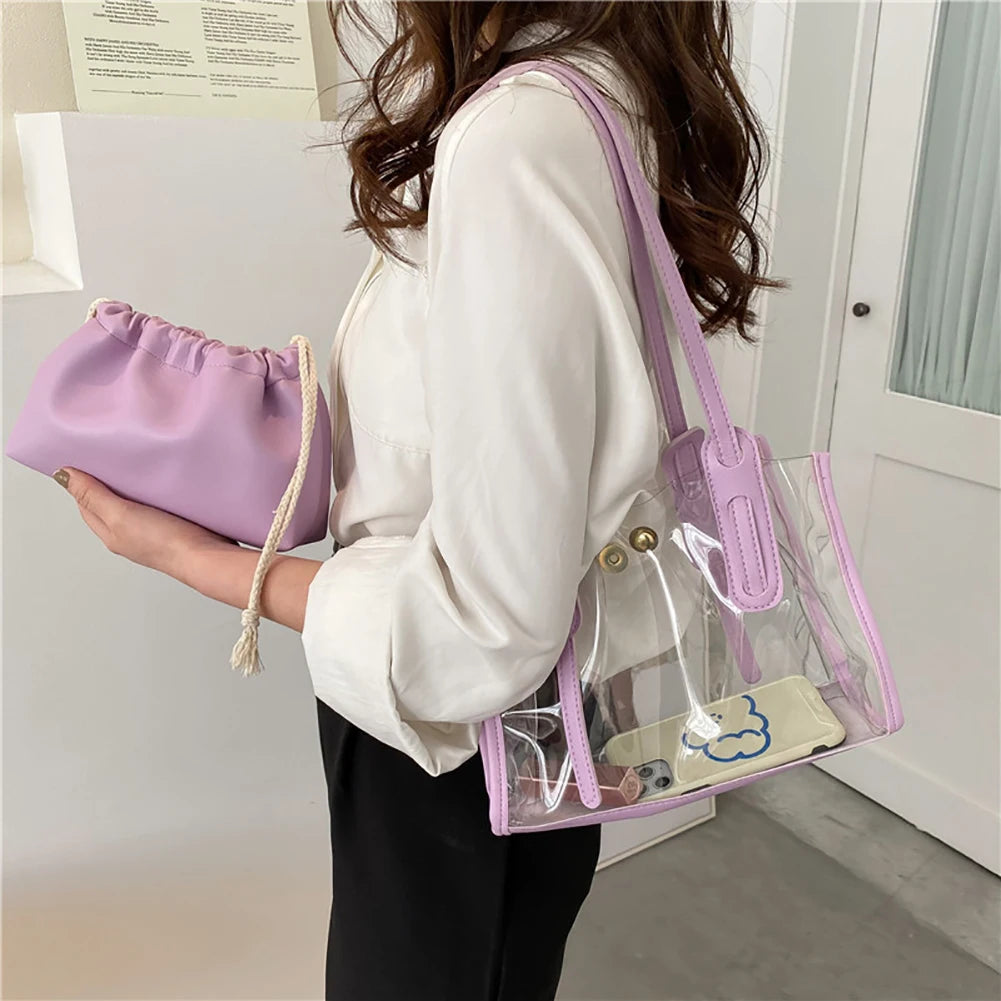Women's PVC Transparent Shopping Bag PU Jelly Tote Shoulder Beach Handbag