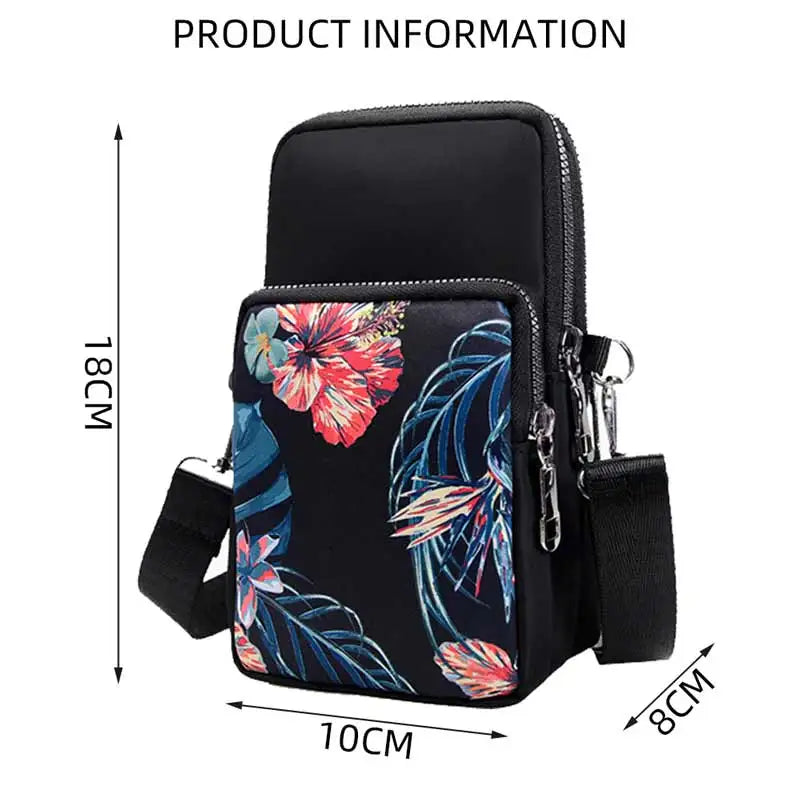 This phone purse features a large capacity, perfect for carrying essentials. Made from floral material, it's ideal for casual outings and can be worn as a shoulder bag, small backpack, or running arm handbag.
