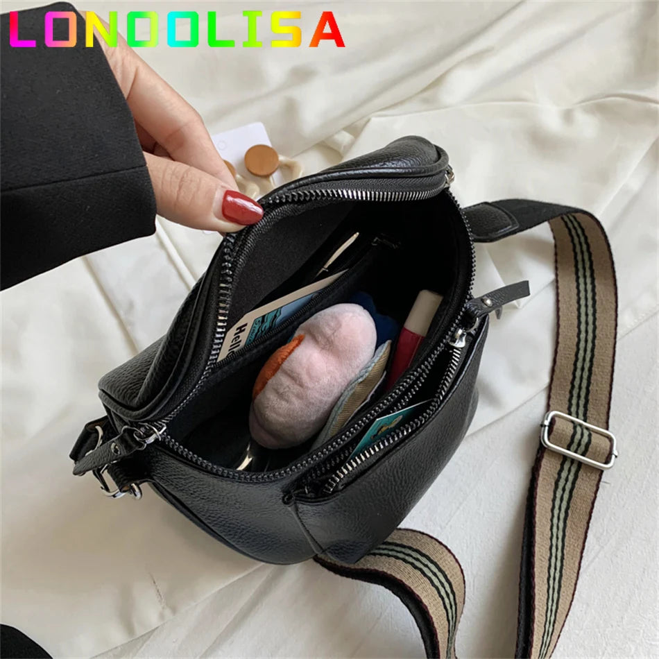 Stay stylish with this PU leather messenger bag featuring a zipper closure and a wide shoulder strap. Perfect for carrying your essentials in a fashionable way.