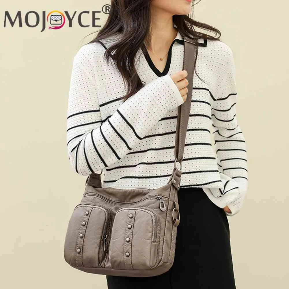 This women's handbag is crafted from soft PU leather and features a multi-pocket design. Perfect for casual outings, it comes with an adjustable strap and rivet accents.