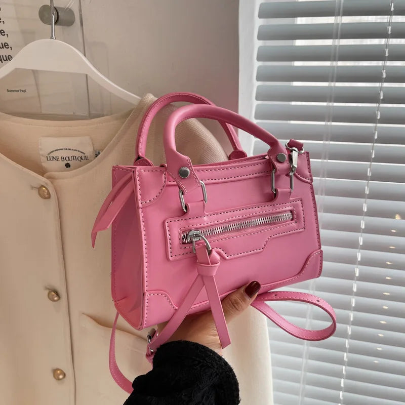 This fashionable women's handbag is crafted from high-quality PU leather, offering durability and style. It features a solid color design, making it versatile and suitable for various outfits and occasions.