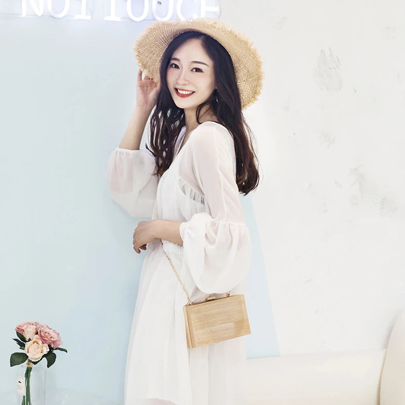 Wood Shoulder Messenger Bag Evening Clutch Metal Hasp Handbag