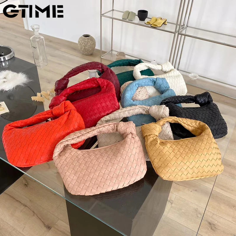 Woven Leather Printed Shoulder Bag Lady Crossbody Hobo Knotted Handle