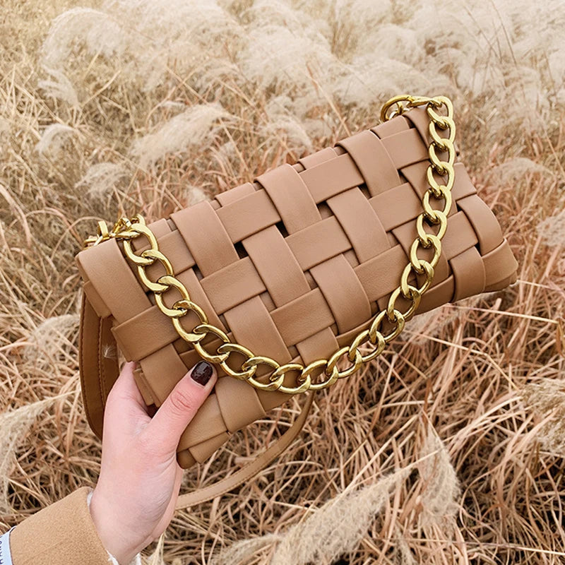 Woven Thick Chain Handbag Zipper Shoulder Strap Messenger Bag