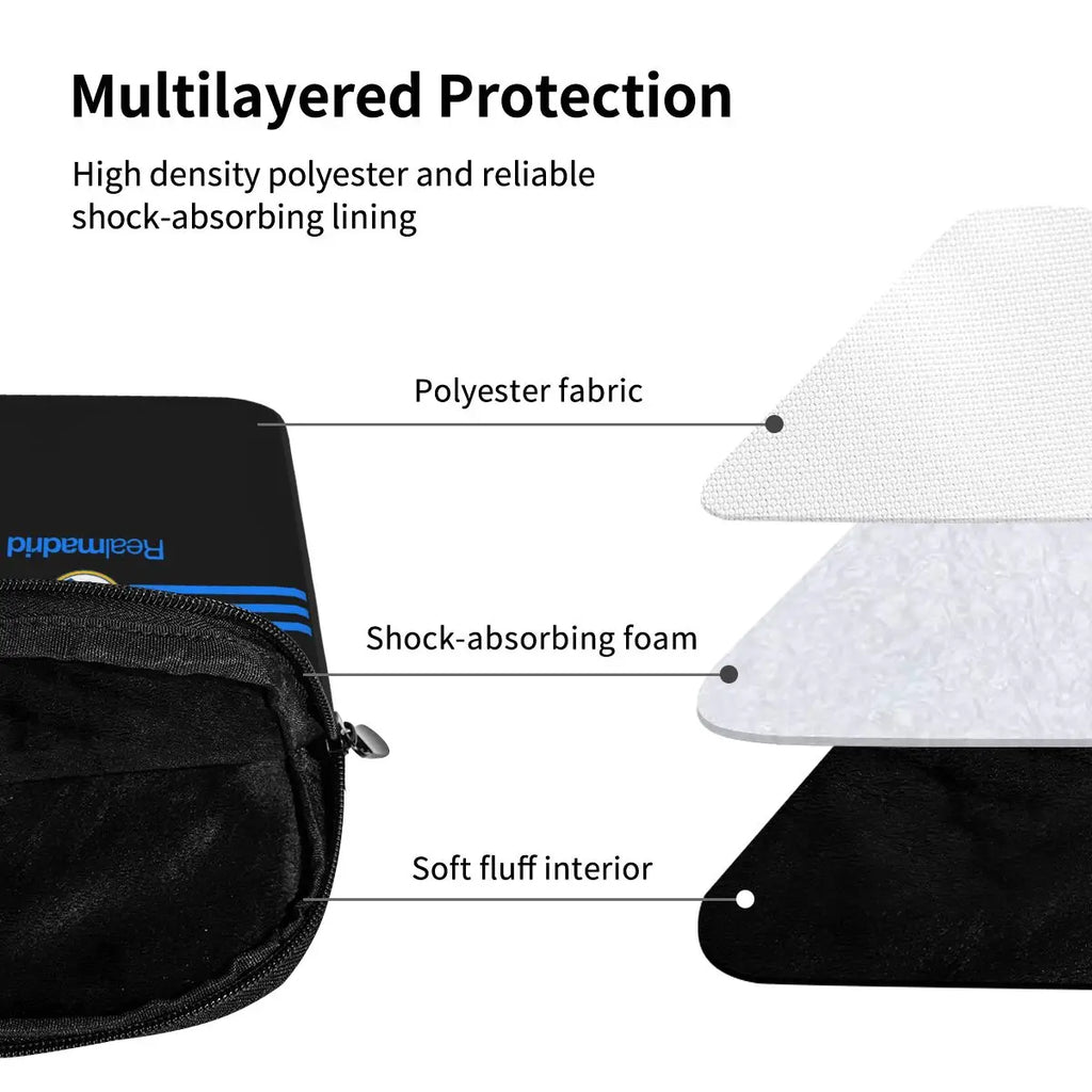 Stay stylish and protect your laptop with this Real Madrid waterproof laptop bag. Fits 13-15 inch laptops. Perfect for work or travel.
