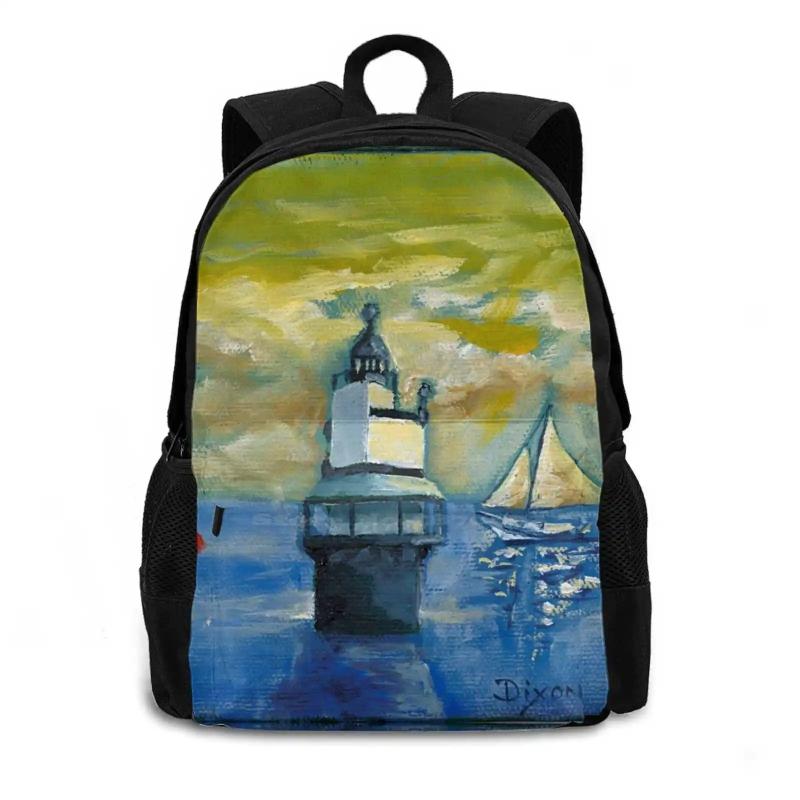 Travel in style with this laptop backpack featuring a historic scene of Solomon's Lump Lighthouse and Skipjack in the Chesapeake Bay from 1886.