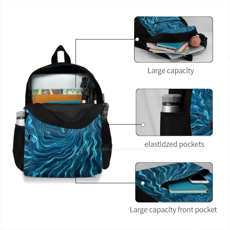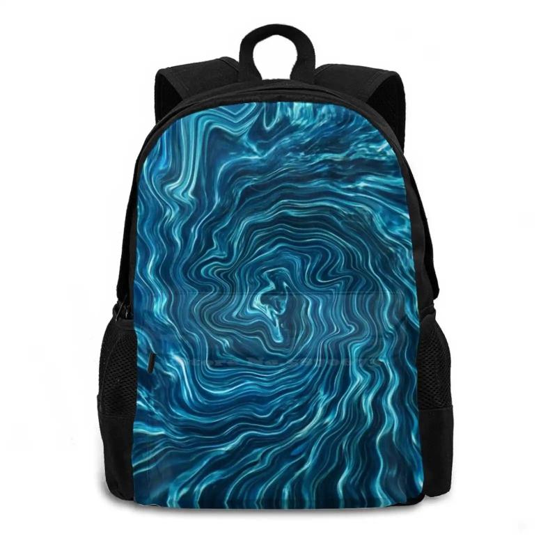 Stay stylish and organized on-the-go with this travel laptop bagpack featuring a watery-looking texture with wavey lines forming the ripple design.