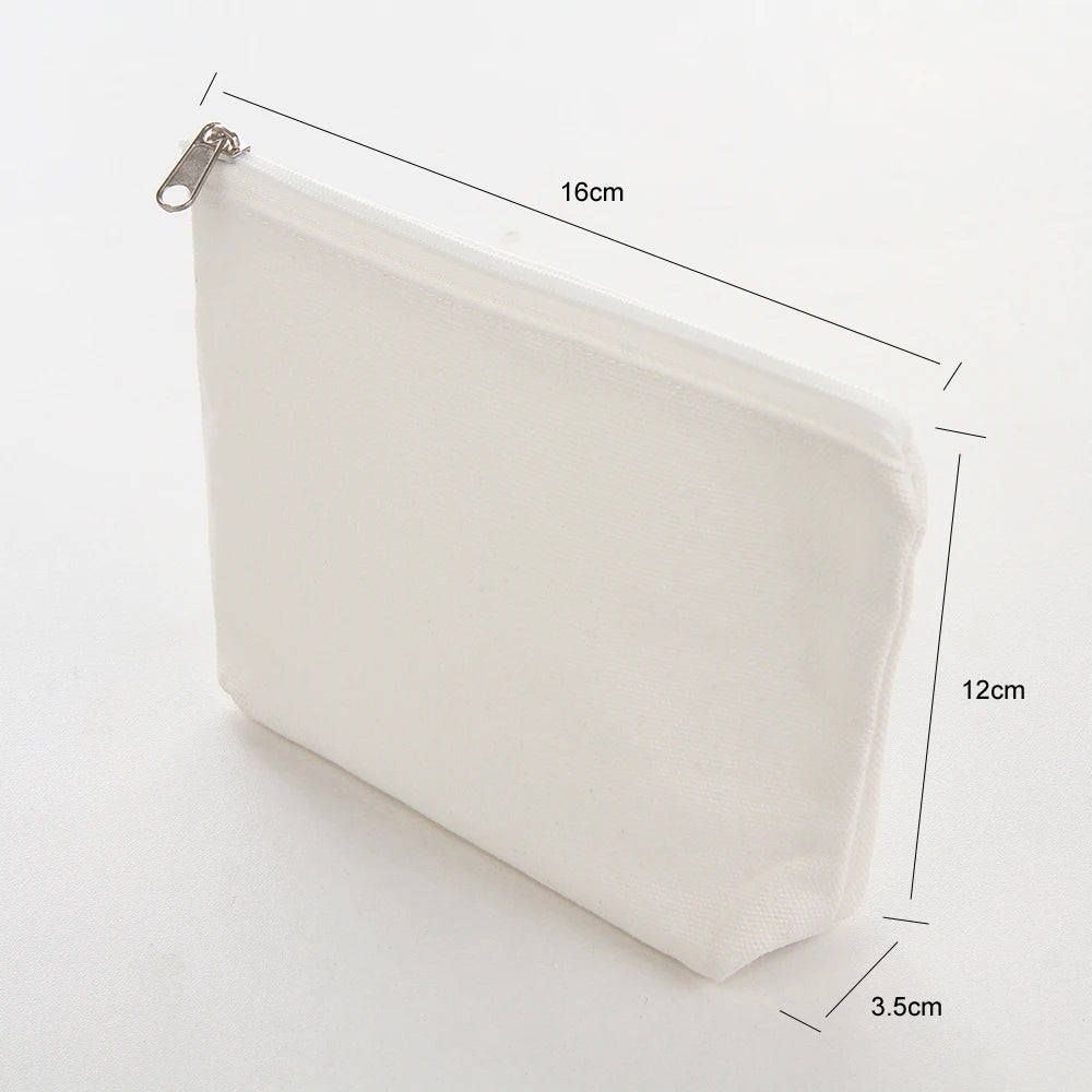 6Pcs DIY Cotton Pure Zipper Case Canvas Travel Cosmetic Bag Washable Pouch