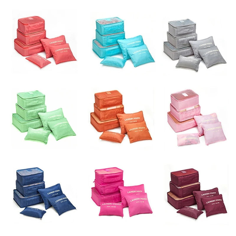 Keep your travel essentials organized with this set of 6 waterproof bags. Great for clothes, accessories and more!