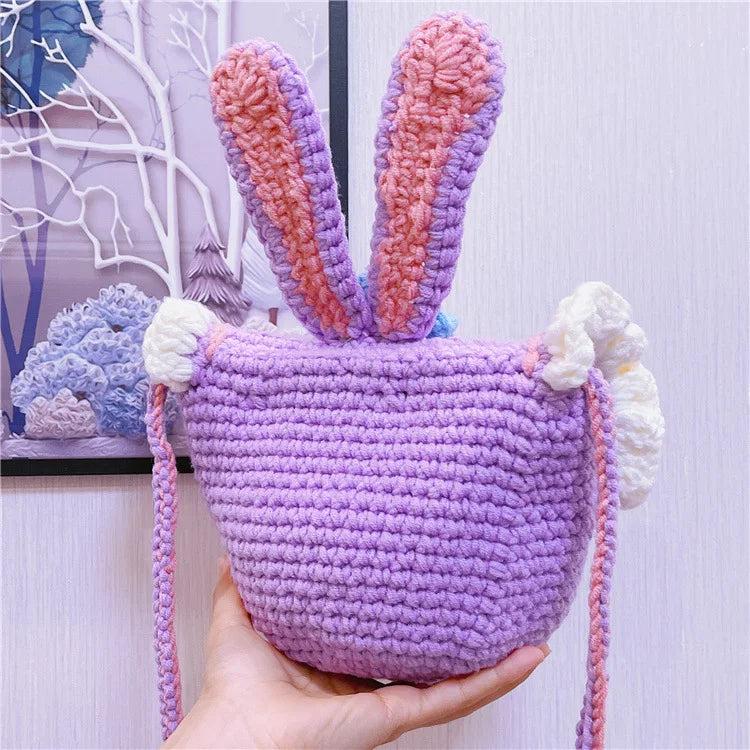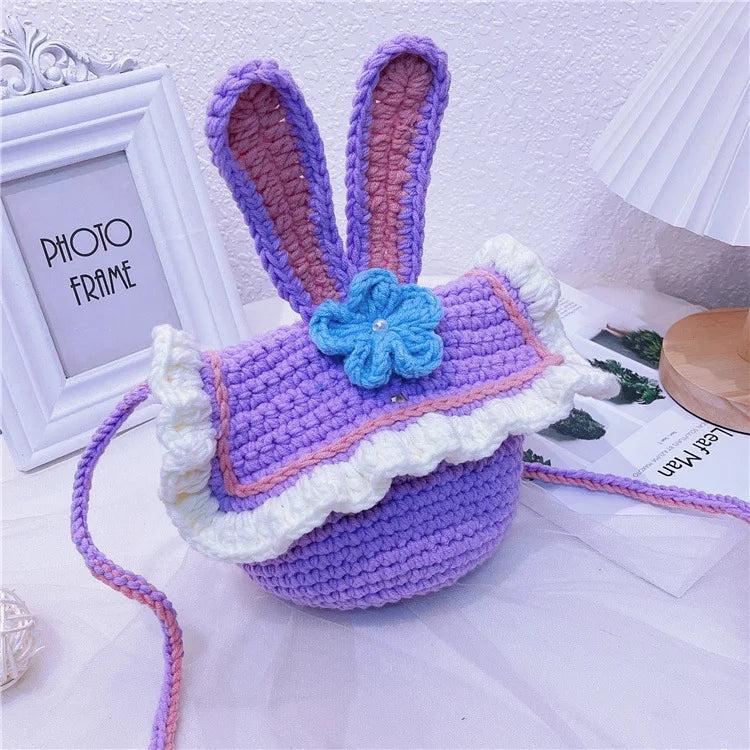 Adult Girls Star Rabbit Hand Woven Bag Ins DIY Shoulder Bag Purple