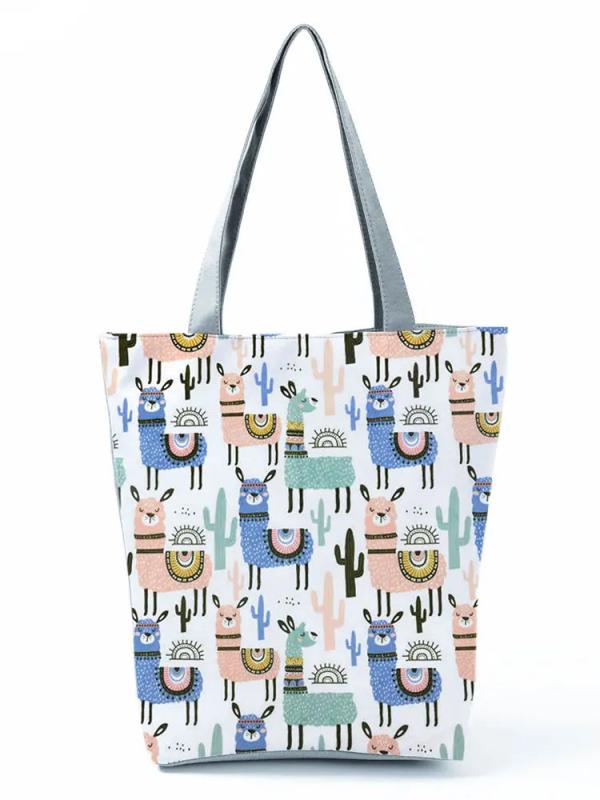 Alpaca Print Shoulder Bag Large Capacity Travel Tote