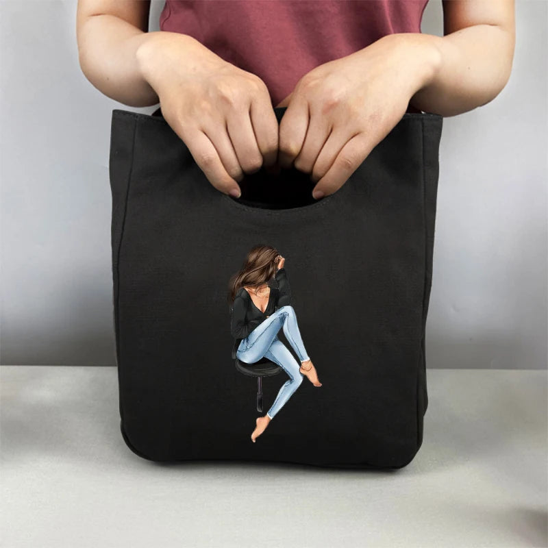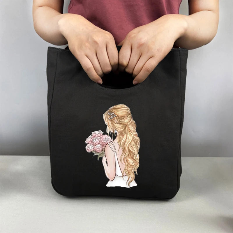 Stay stylish while keeping your food fresh with this reusable anime girl print lunch pouch. The eco-friendly canvas material and large capacity make it perfect for picnics or daily use.