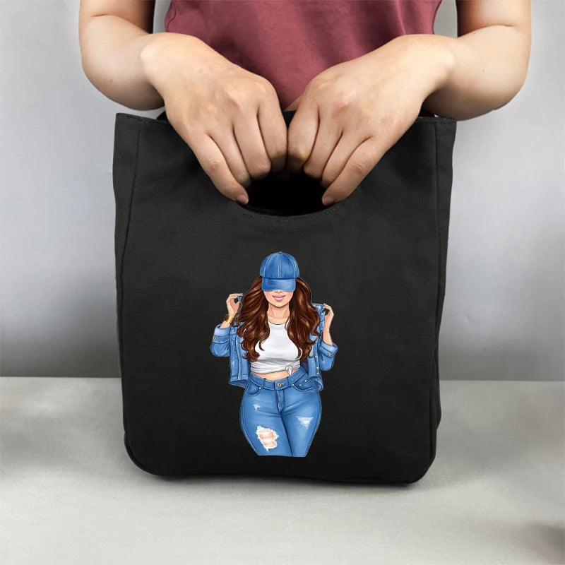 Anime Girl Lunch Pouch Canvas Thermal Box Insulated Picnic Bag