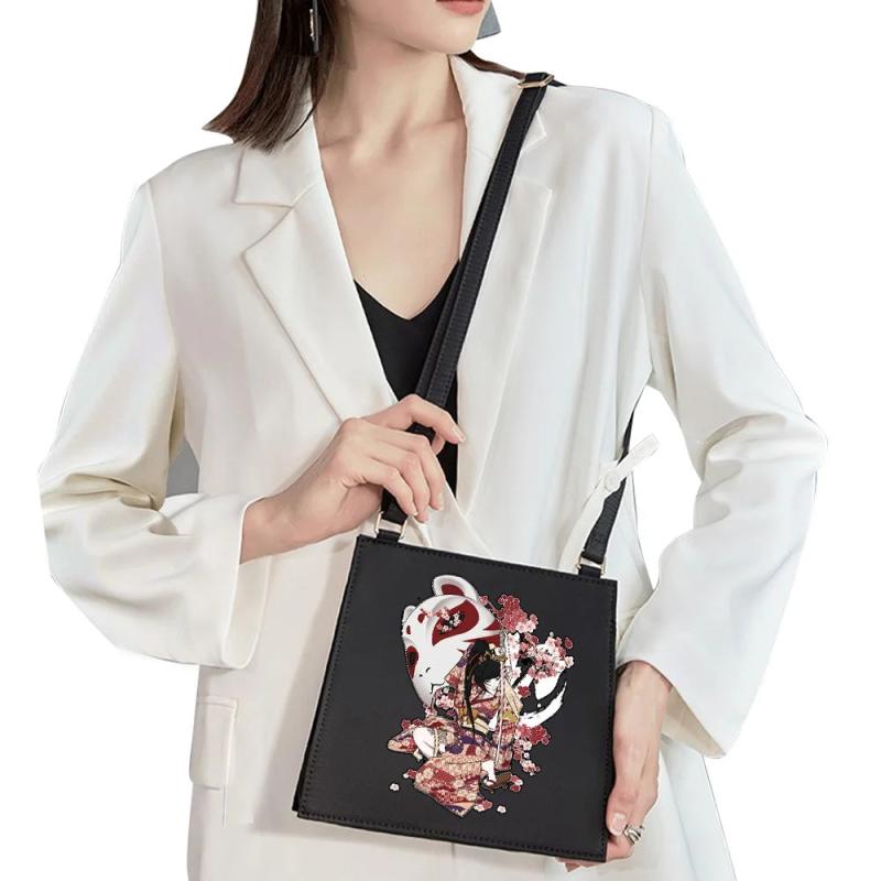 Stay stylish and trendy with this anime mask pattern shoulder bag for women. Perfect for a night out or a casual day, this diagonal commuter bag is a must-have accessory.