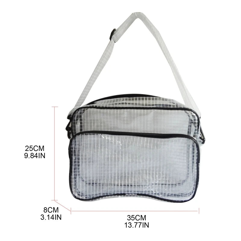 This clear PVC bag is designed for use in semiconductor cleanrooms. It features anti-static properties to prevent static build-up. The satchel style offers convenient storage and easy access. Can be worn as a crossbody messenger bag.