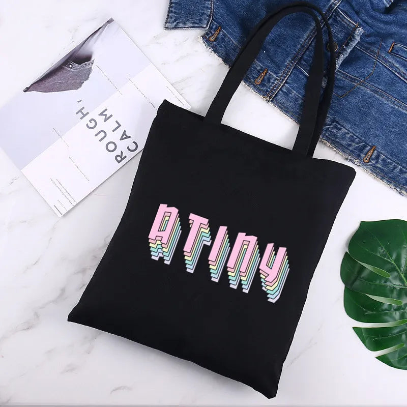 This stylish canvas tote bag featuring ATEEZ K-pop design is perfect for casual outings and shopping. It's a great accessory for female K-pop fans.