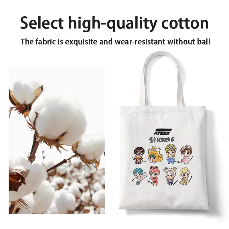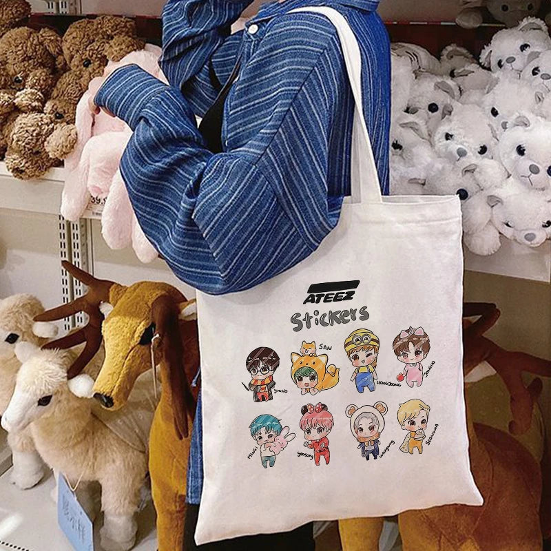 ATEEZ Kpop Hip Hop Hipster Print Shopping Bag Eco Canvas Tote Hand Bag