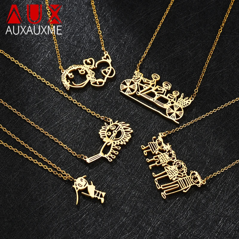 Auxauxme Children's Drawing Necklace Stainless Steel Kid's Art