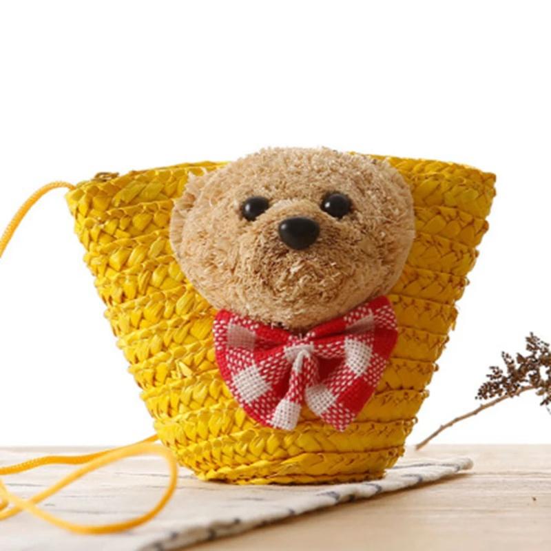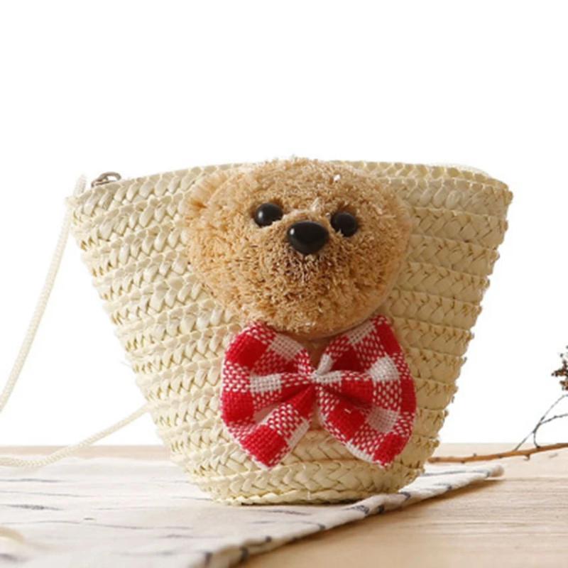 Bear Head Bow Knitting Key Change Knit Bag Messenger Beach Bag