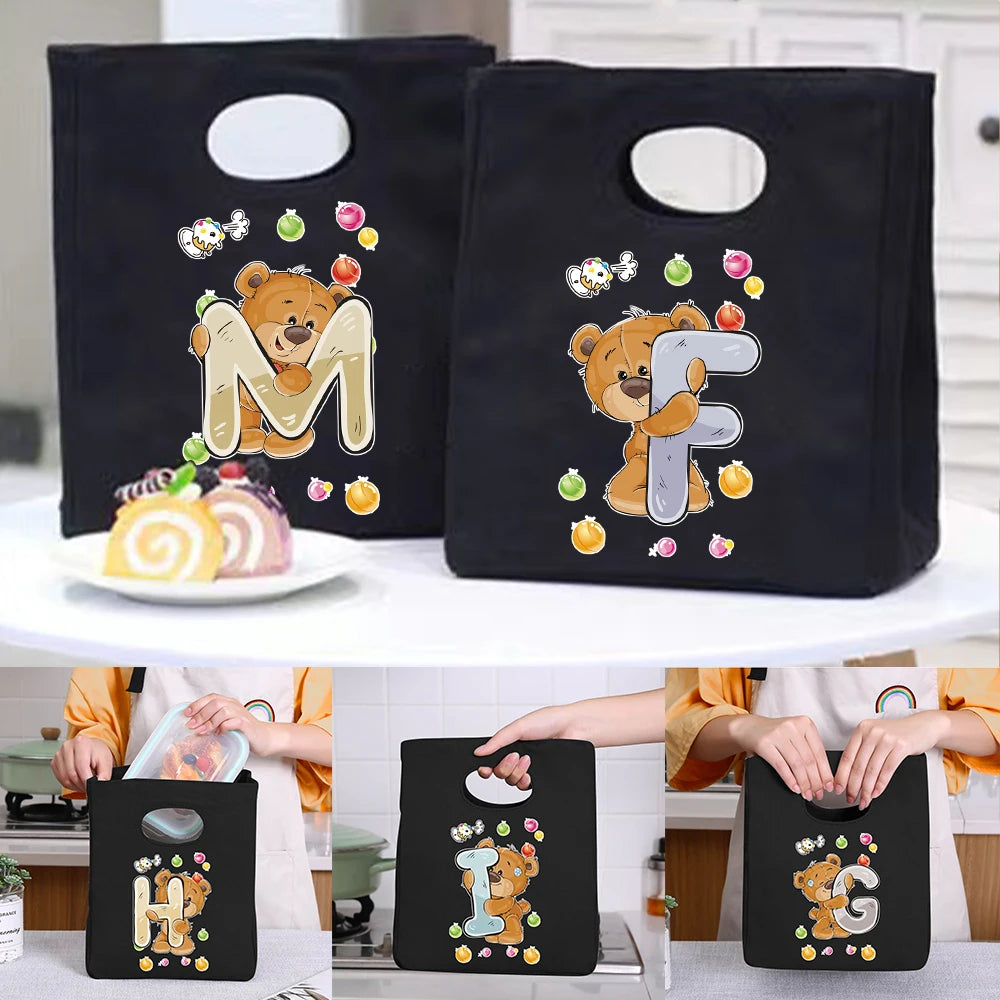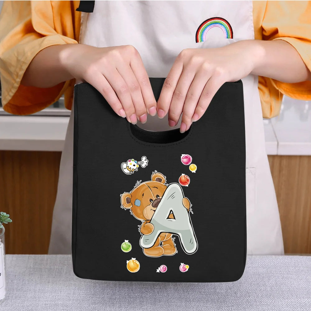 Bear Letter Print Thermal Insulated Lunch Tote Cooler Bag