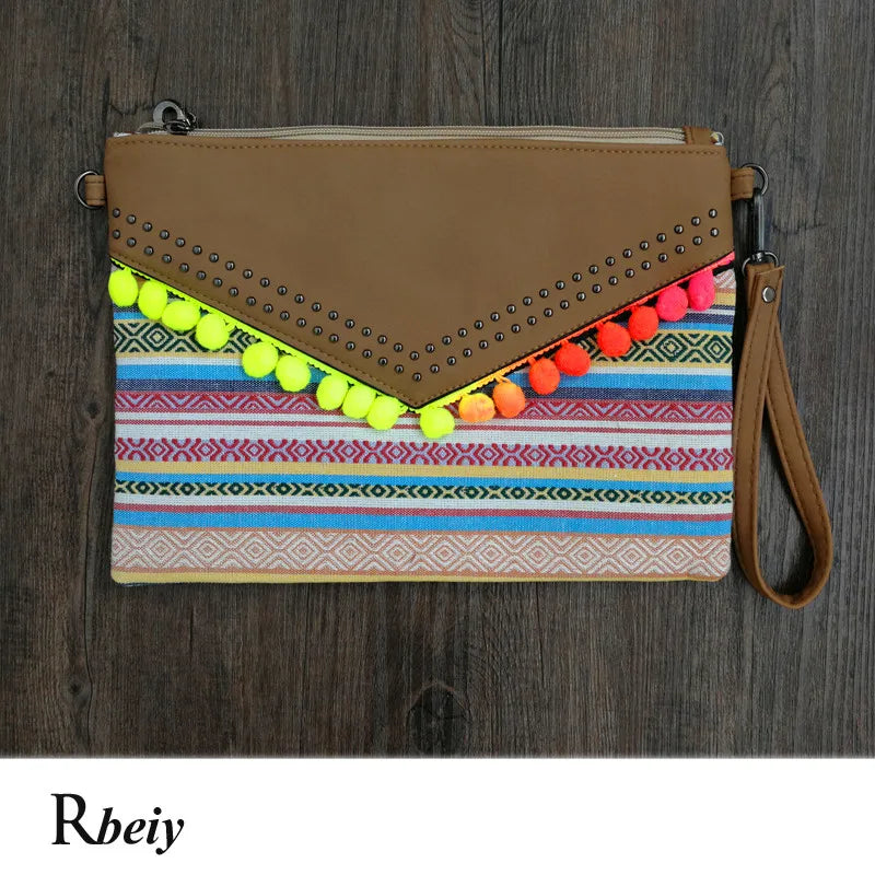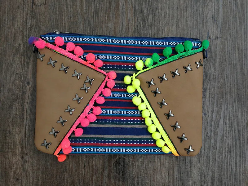 Bohemian Rivet Chain Crossbody Bag Tassel Clutch
