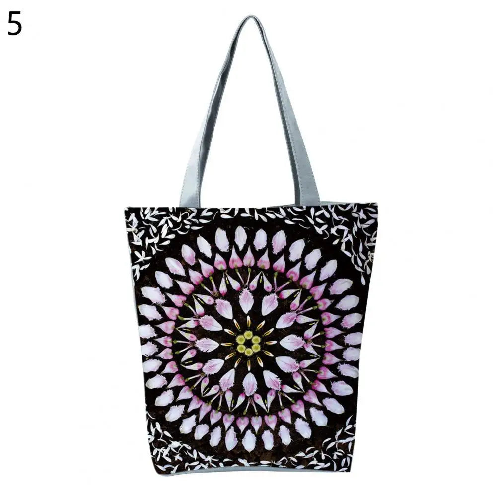 Boho Round Print Shoulder Bag Foldable Large Capacity Top-Handle Bag