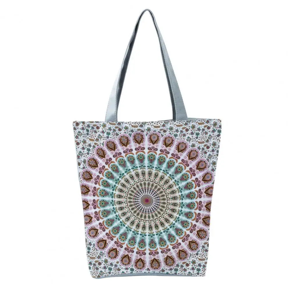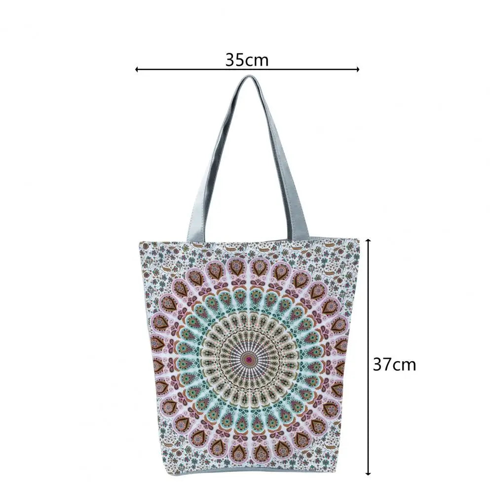 This stylish Bohemia shoulder bag is designed with a round print and a foldable design. It has a large capacity making it perfect for school or everyday use.