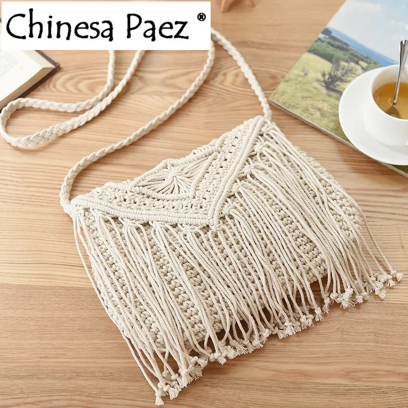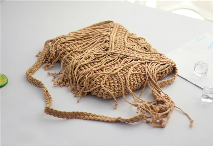 Boho Tassel Straw Beach Bag Hollow Crossbody Hand Woven Shoulder Bag