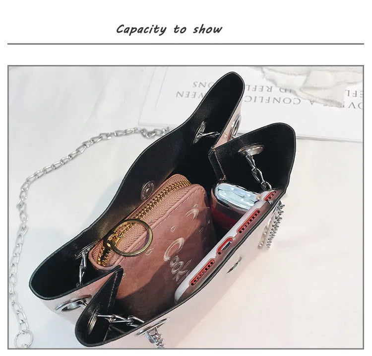 Bright Small Bag European American Printing Chain Shoulder Messenger Bucket Moth