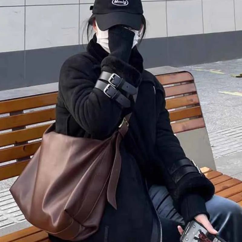 Brown Pu Large-capacity Ladies College Tote Bag Autumn