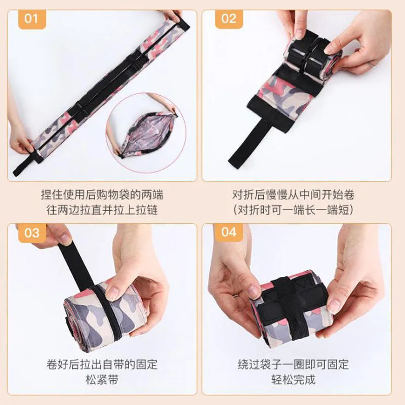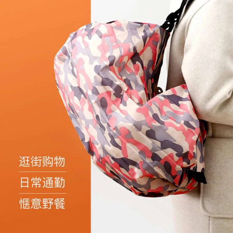 Camo Folding Storage Bag Portable Tote Waterproof Hiking Shoulder Shopping Bag