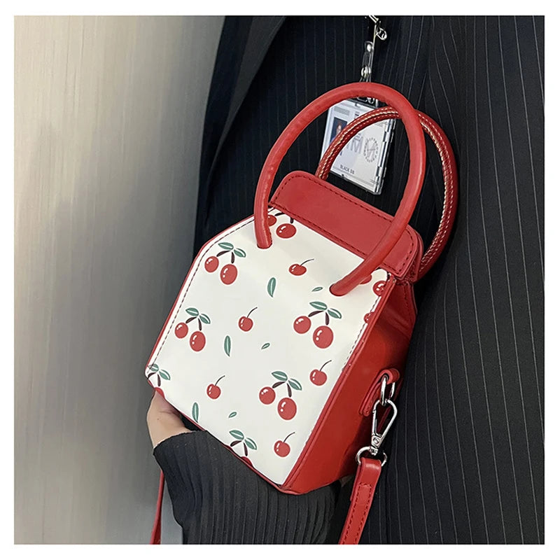 This stylish crossbody bag features a cute candy print with cherry love design, perfect for a net red look. Made of high-quality PU material.